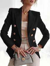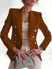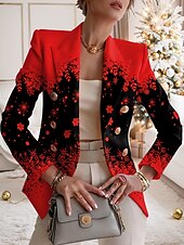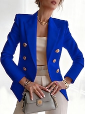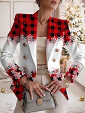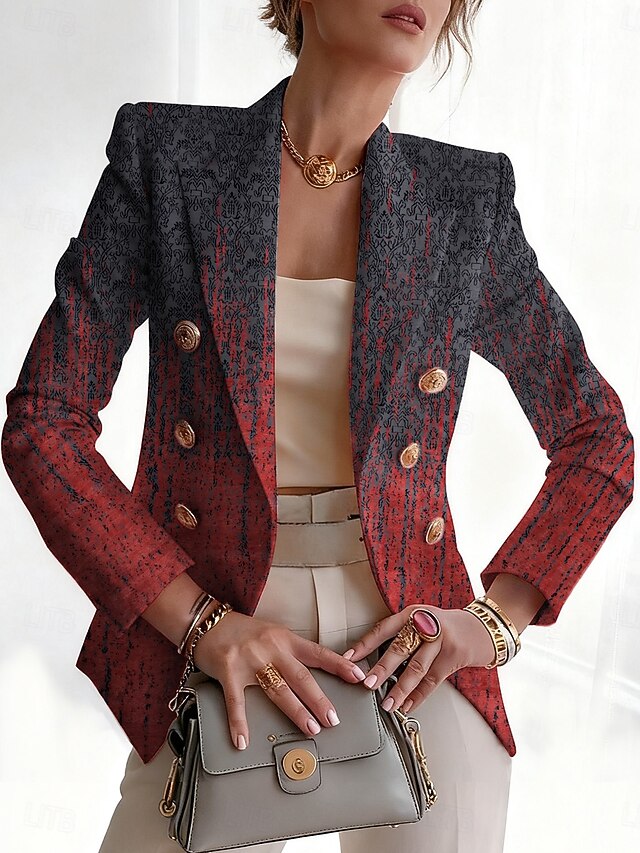More information about Women's Blazer Comfortable Breathable Buttons Print Fashion Casual Geometric Office Street Casual Daily Wear Double Breasted Regular Notch Lapel Regular Fit Long Sleeve Outerwear Red Blue Purple Fall