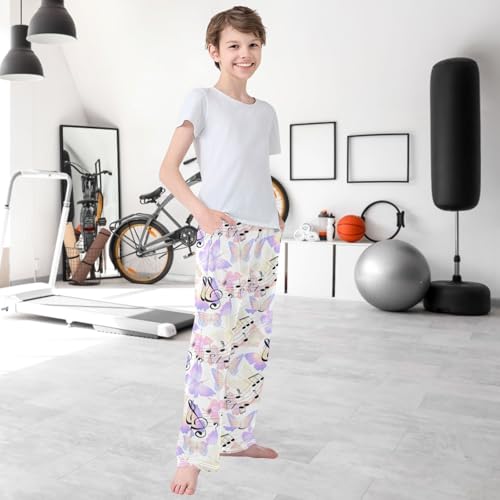 Boy's Pants Musical Sign Butterfly Jogger Pants Elastic Waist Long Bottoms Trousers with Pockets 6-14 Years 6