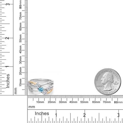 925 Silver and 10K Yellow Gold Lab Grown Diamond and Swiss Blue Topaz and Lab Grown Diamond Engagement Ring for Women | 1.05 Cttw | Round 4MM | Gemstone April Birthstone | Available in Size 5,6,7,8,9 6