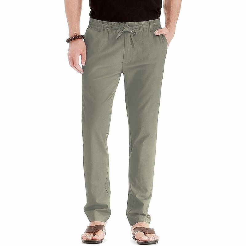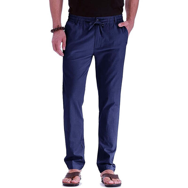 More information about Men's Linen Pants Trousers Summer Pants Elastic Waist Multi Pocket Plain Comfort Breathable Full Length Business Casual Basic Casual Slim Black White Micro-elastic