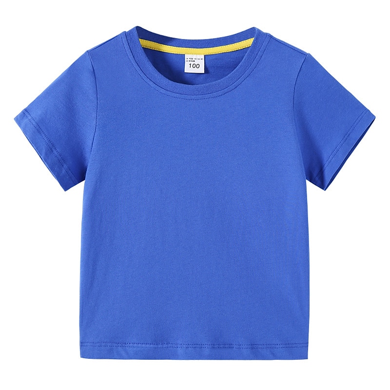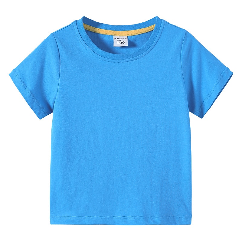 Kids Boys T shirt Tee Solid Color Short Sleeve Crewneck 100% Cotton Children Top School Neutral Daily Basic Summer Light Blue 3-13 Years 24