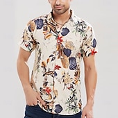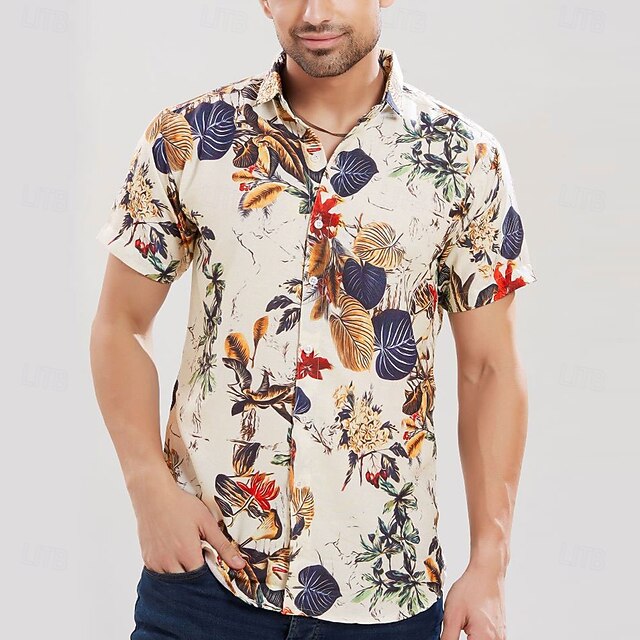 More information about Men's Floral Tropical Plants Flowers Summer Hawaiian Shirt Aloha Shirt Short Sleeve Hawaiian Resort Vacation Holiday Beach Wear Summer Spring Turndown Button Up Beige