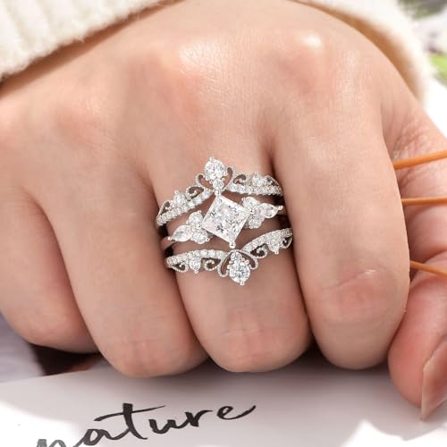 Wuziwen Vintage Crown Ring Enhancer for Engagement Rings Wrap Guard Wedding Band for Women 925 Sterling Silver CZ 3