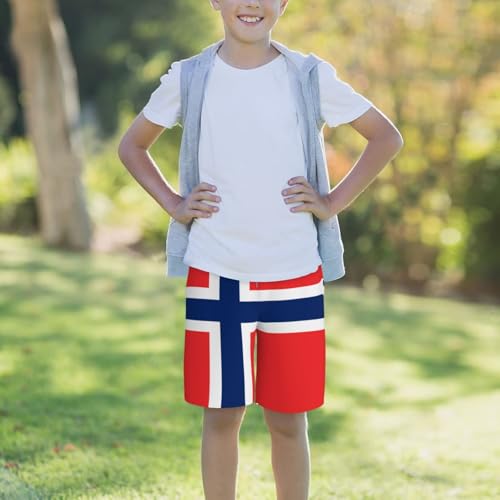 Norwegian Flag Youth Beach Pants, Soft and Breathable, with Drawstring Waist, Suitable for Sports and Leisure. 1
