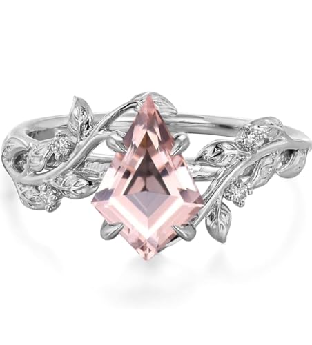 HOT ! Ticon Pink Morganite Kite Cut Ring for Women in Rose Gold, Yellow Gold, or White Gold Plated 925 Sterling Silver ring