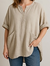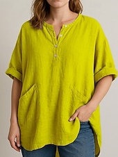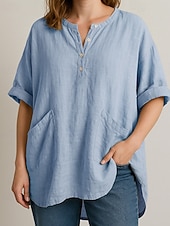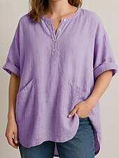More information about Women's Shirt Blouse Plain Modern Casual 3/4 Length Sleeve V Neck Regular Tops Daily Going out Pocket Asymmetric Hem Yellow Sky Blue Purple Khaki Fall