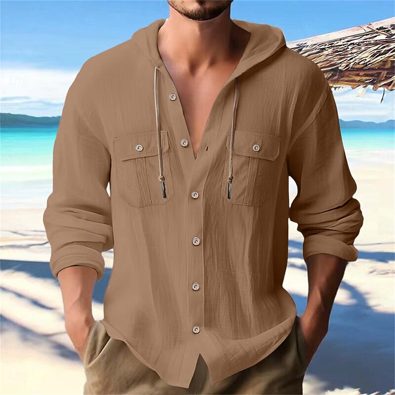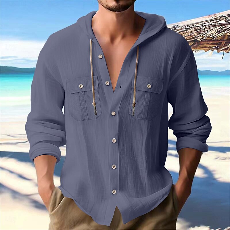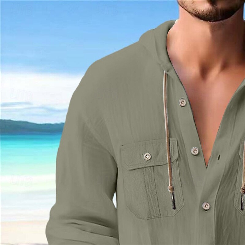 More information about Men's Shirt Linen Shirt Summer Shirt Beach Shirt Plain Vacation Casual Black White Navy Blue Blue Long Sleeve Band Collar Spring & Summer Clothing Apparel