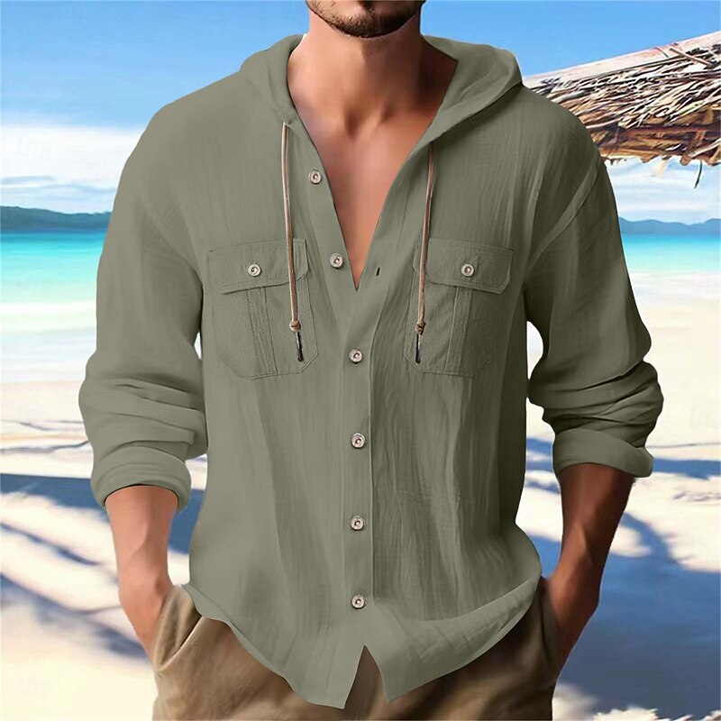 Men's Shirt Linen Shirt Summer Shirt Beach Shirt Plain Vacation Casual Black White Navy Blue Blue Long Sleeve Band Collar Spring & Summer Clothing Apparel 1