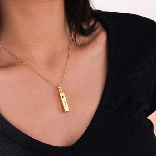 More information about 14K Gold Vermeil Personalized Cremation Urn Necklace, Pet Ash Holder Pendant, Memorial Necklace for Pet Loss, Vertical Bar Memorial Necklace