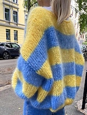 More information about Women's Sweater Fashion Streetwear Casual Striped Ribbed Crew Neck Knitted Long Sleeve Regular Tops Knit Outdoor Daily Weekend Yellow Fall Winter