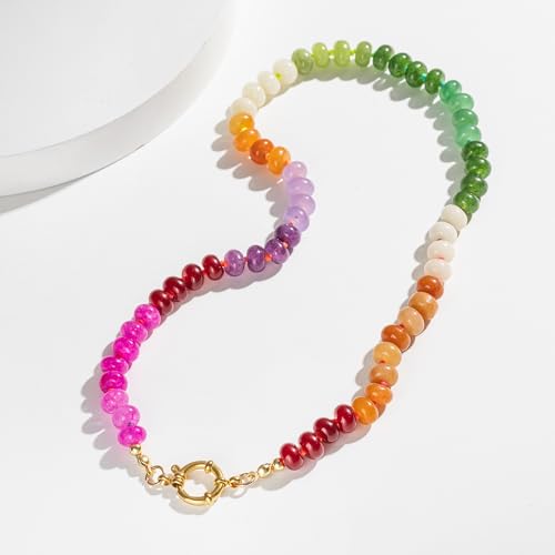 More information about Colorful Beaded Gemstone Necklace for Women Colorful Gemstone Necklace 5 * 8mm 14K Gold Plated Boho Style Summer Handmade Jewelry Gift