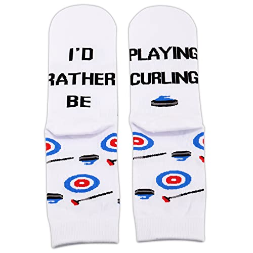 ZJXHPO Winter Sport Curling Crew Sock I’d Rather Be Playing Curling Novelty Sock Curling Coach Player Fan Lover Gift 1