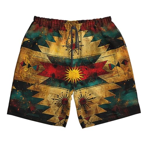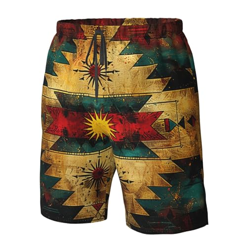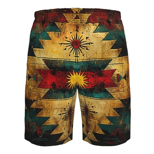 Native American Indian Aztec Tribes Geometric Men's Quick Dry Swim Trunks Surfing Beach Mesh Board Shorts 1