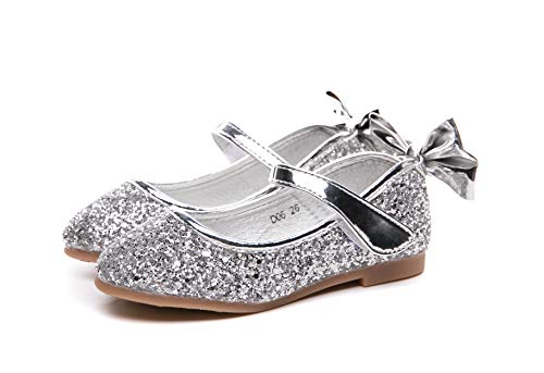 Kid's Girl's Adorable Bowknot Sparkle Mary Jane Flats Glitter Princess Wedding Party Dress Shoes 4