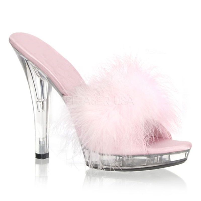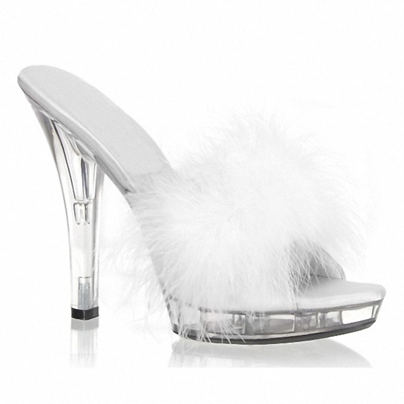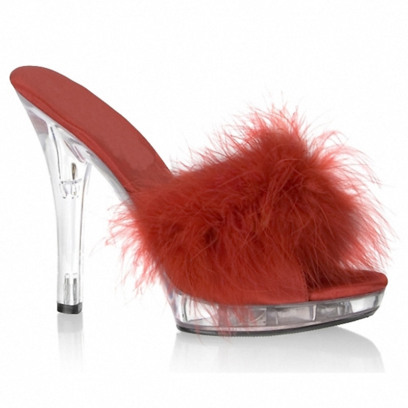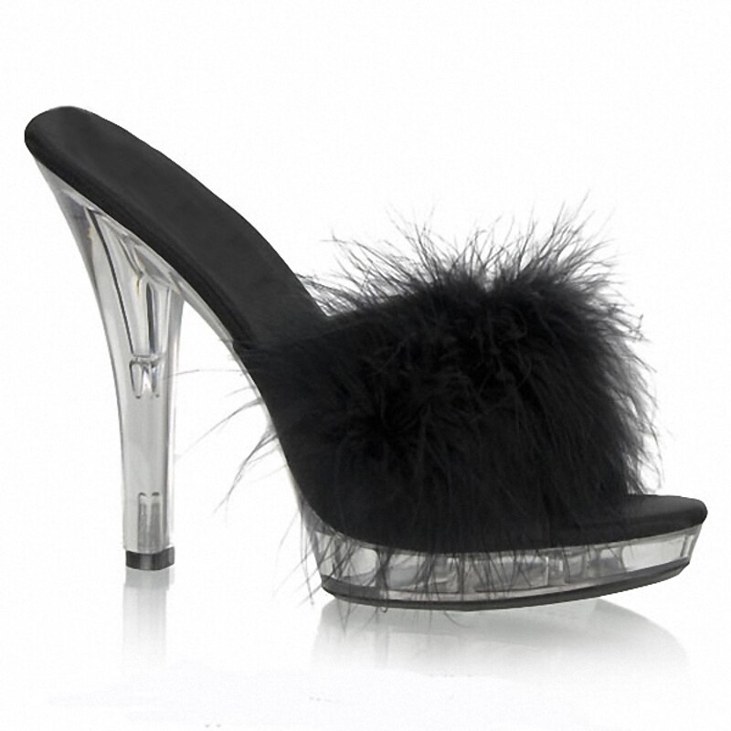 The standout feature of these mules is the chic combination of patent leather and faux feathers, available in a variety of solid colors including black, white, red, and pink. The transparent platform heel adds a modern and sophisticated touch, making these shoes a must-have for any fashion-forward wardrobe.