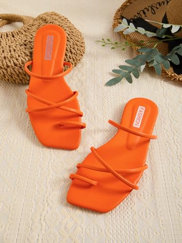 GORGLITTER Women's Criss Cross Strap Flat Sandals Ring Toe Thong Flip Flop 1