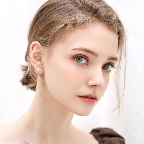 Hypoallergenic Star Earrings for Girls, S925 Sterling Sliver Stud Earrings For Women ARSKRO White Tiny Little Small Cute Fire Opal Earring Jewelry Gifts for Kids Sensitive Ears 7