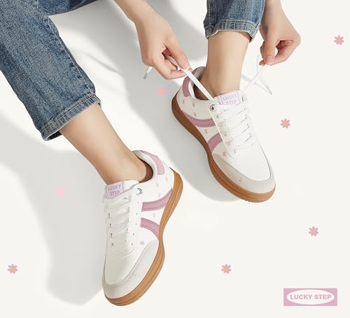 LUCKY STEP Women Classic Retro Tennis Sneakers Fashion Gum Sole Skate Casual Walking Shoe Anti Slip Floral Embroidery Comfortable Trainers 4