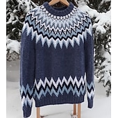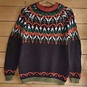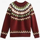 More information about Women's Fair Isle Sweater Pullover Elegant Vintage Streetwear Geometric Ribbed Crew Neck Floral Long Sleeve Regular Tops Knit School Outdoor Home Black Red Spring Fall