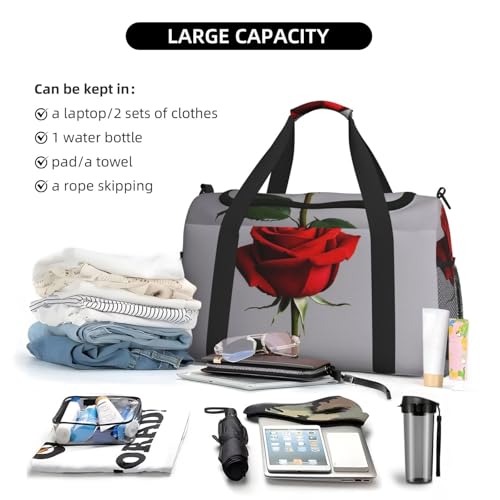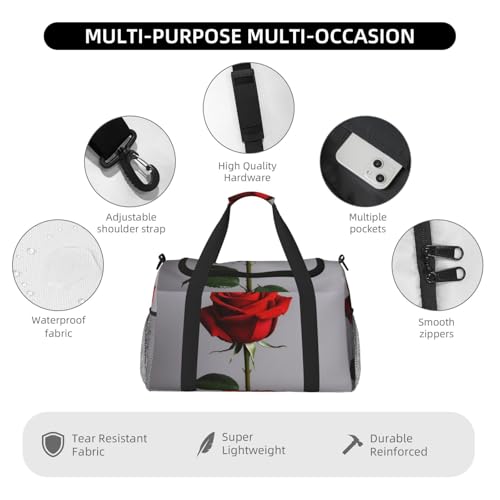 HOT ! Red rose Print Travel Duffle Bag - Foldable Personal Item Travel Bag for Women & Men,Carry-On Convertible Crossbody Tote Bags with Adjustable Shoulder Strap & Pockets 13x10.2x19.7 in