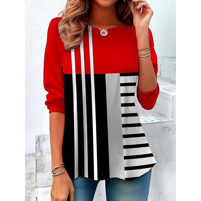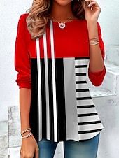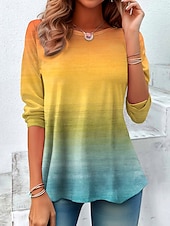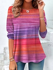 More information about Women's T Shirt Graphic Geometric Vintage Stylish Casual Long Sleeve Crew Neck Regular Tops Daily Print Yellow Red Blue Purple Orange Spring Fall Winter