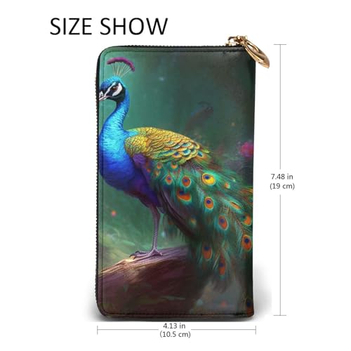 Colorful Peacock Printed Long Wallet for Women Men Cute PU Leather Wallet with Coin Purse and Credit Card Holder 5