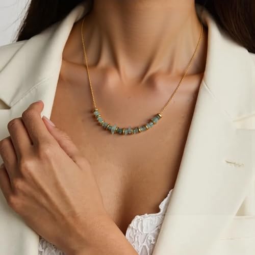 • Statement and Unique Design:Gold necklace for women,Irregular natural stone pendant with a shiny,cute appearance,complemented by a delicate 14K gold-plated chain for a unique,elegant style.