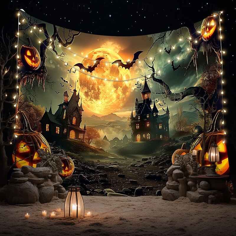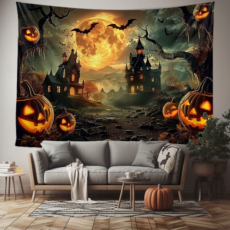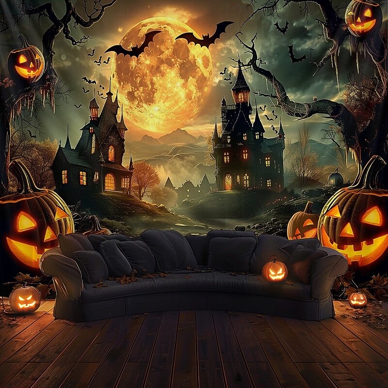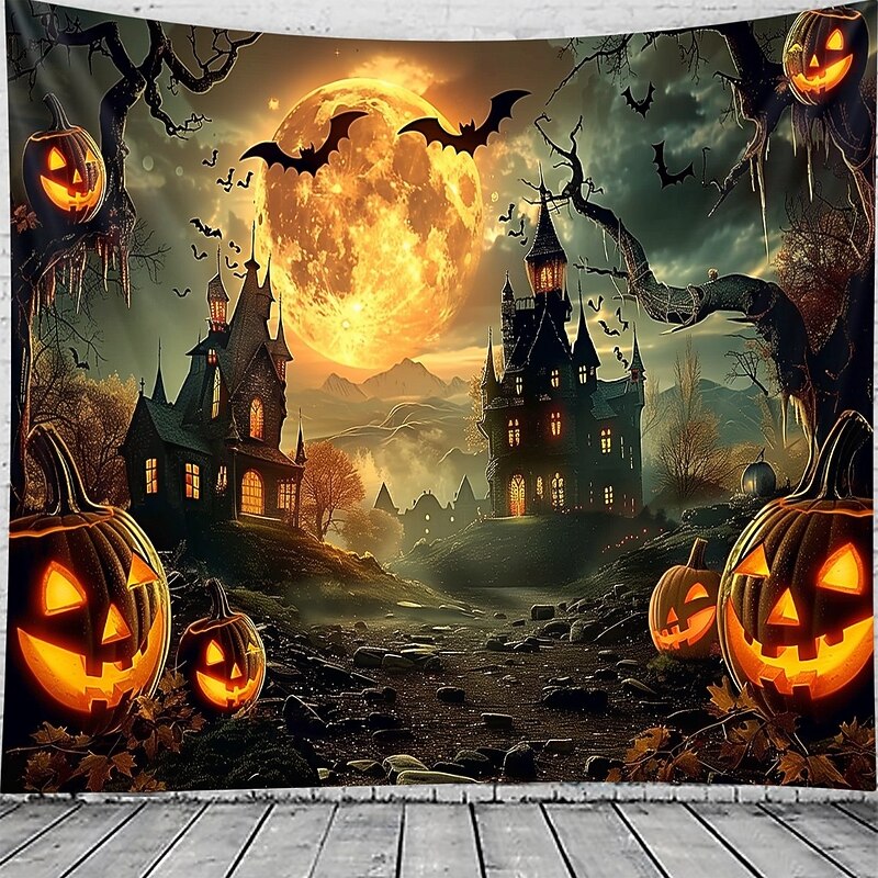 $13.99 - Halloween Gothic Castle Wall Tapestry – Spooky Night Scene with Pumpkins and Bats, Horror Haunted Castle Backdrop for 2025 HALLOWEEN Living Room, Bedroom, Party Decoration 2025. Shop for cheap Halloween Wall Tapestries online? Buy at lightinthebox.com on sale today!