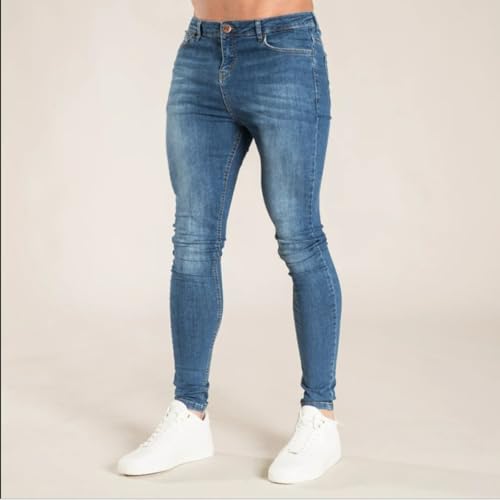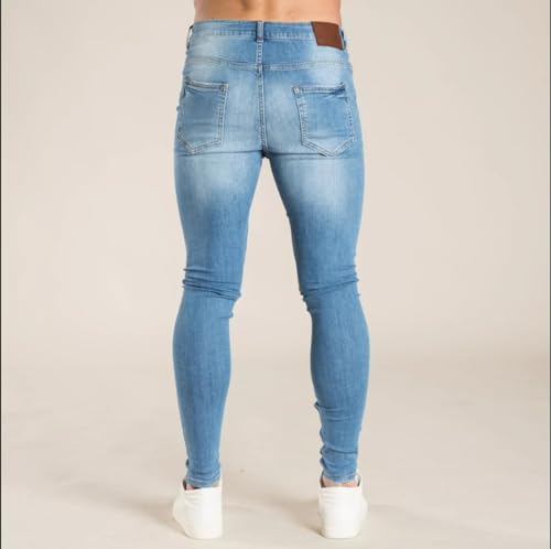 Jeans Pants Trouser Denim Ripped Street Trendy Slim Fit Elastic Low Waist Washed Tight Fitting for Men 7
