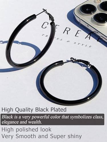 Stylish Thick Hoop Earrings for Women Teen Girls, Black/18K Gold Plated Stainless Steel Earrings, Lightweight Comfy Hoops Hypoallergenic, Size: 30/40/50/60/70/80mm, Come Gift Box 2