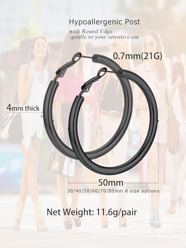 Stylish Thick Hoop Earrings for Women Teen Girls, Black/18K Gold Plated Stainless Steel Earrings, Lightweight Comfy Hoops Hypoallergenic, Size: 30/40/50/60/70/80mm, Come Gift Box 4