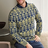More information about Men's Geometic Fair isle Sweater Pullover Sweater Jumper Knitwear Crewneck Casual Vacation Daily 3D Print Keep Warm Long Sleeve Spring Fall Winter Green