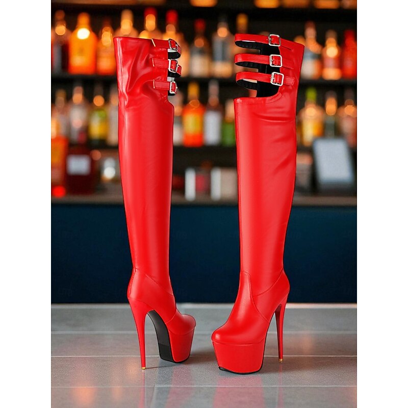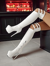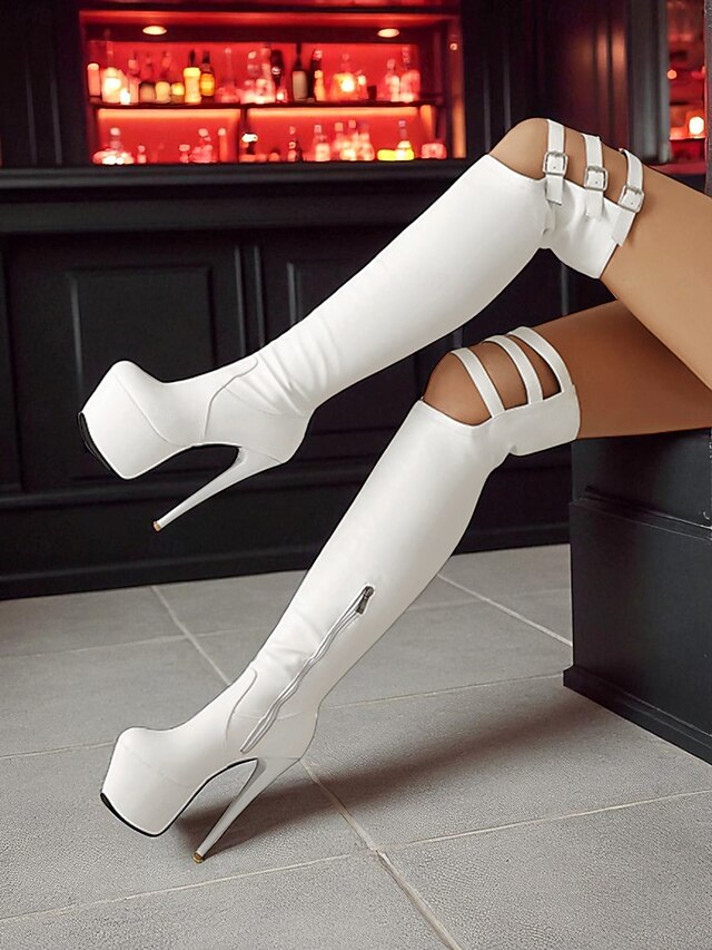 Women's White Platform Thigh High Boots with Buckle Straps - Sexy Stiletto Heels for Nightlife, Clubwear & Party Outfits 17