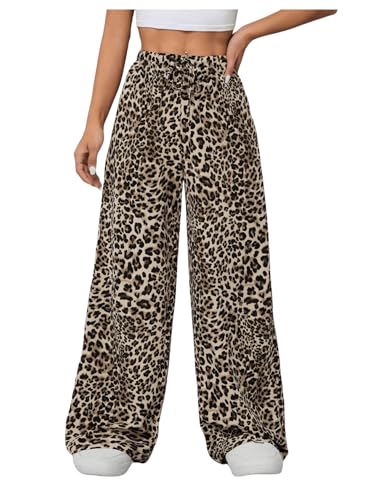 HOT ! SweatyRocks Women's Leopard Print Animal Wide Leg Pants Elastic Waist Trousers with Pockets