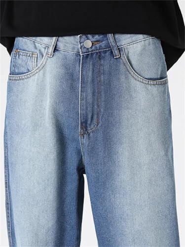 Mens Jeans Spring Wide Leg Loose Straight Casual Streetwear Baggy Bleach High Street Denim Pants 6