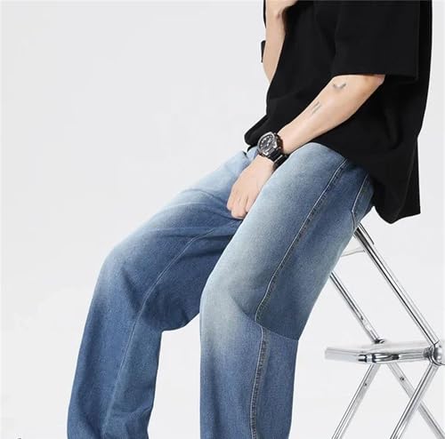 HOT ! Mens Jeans Spring Wide Leg Loose Straight Casual Streetwear Baggy Bleach High Street Denim Pants