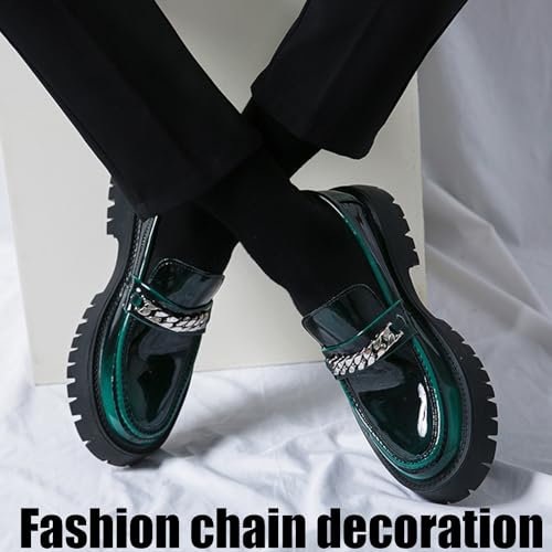 Men's Patent Leather Slip on Platform Loafers with Chain Decor Luxury Round Toe Low Block Lug Sole Business Office Dress Shoes Non-Slip Dating Party Casual Shoes 7