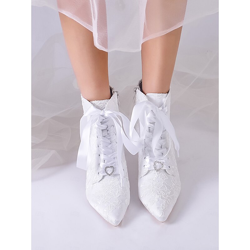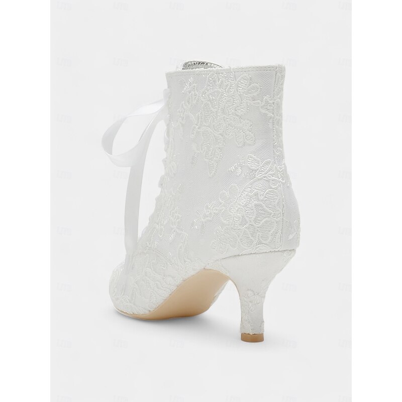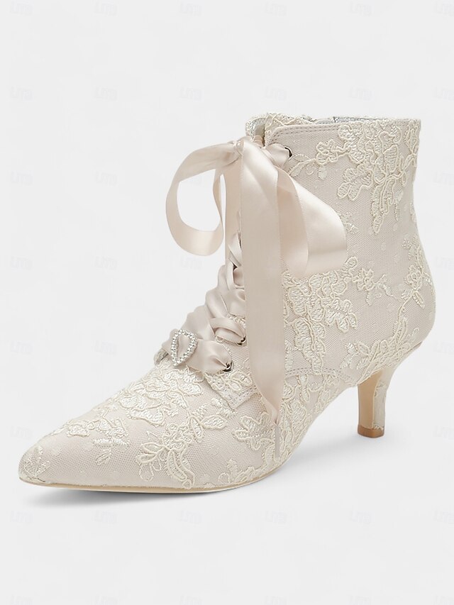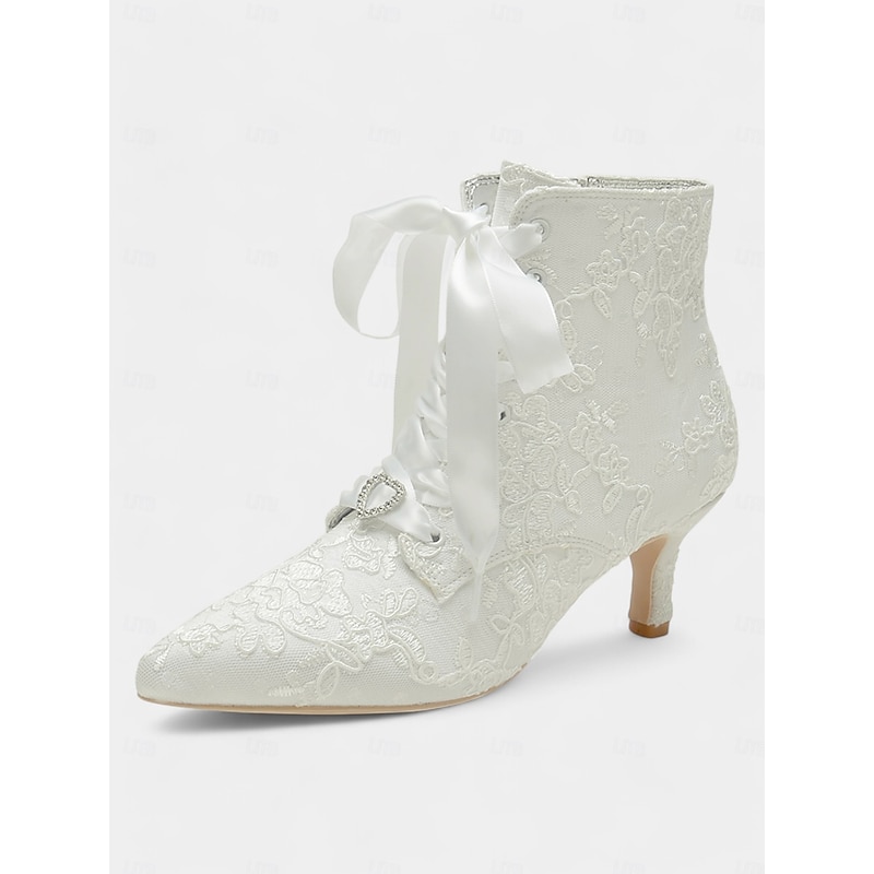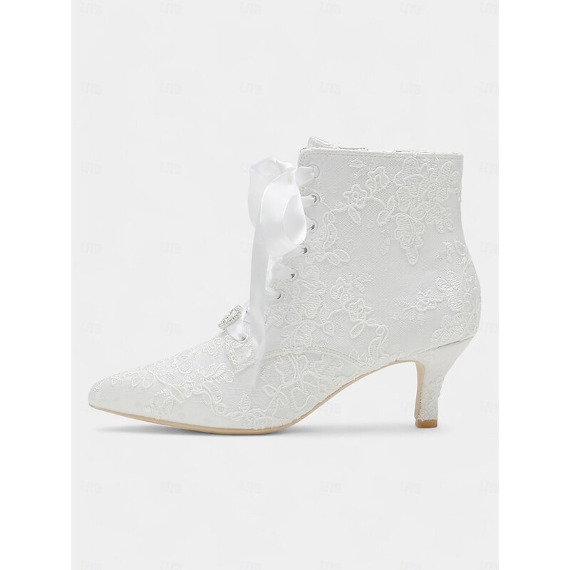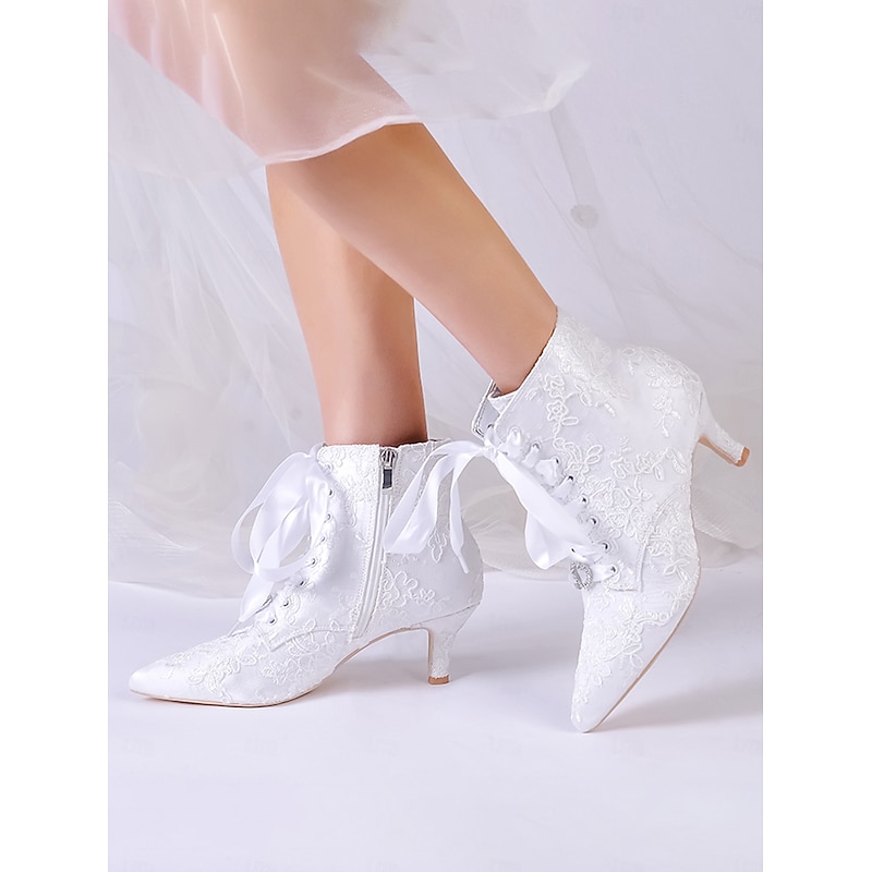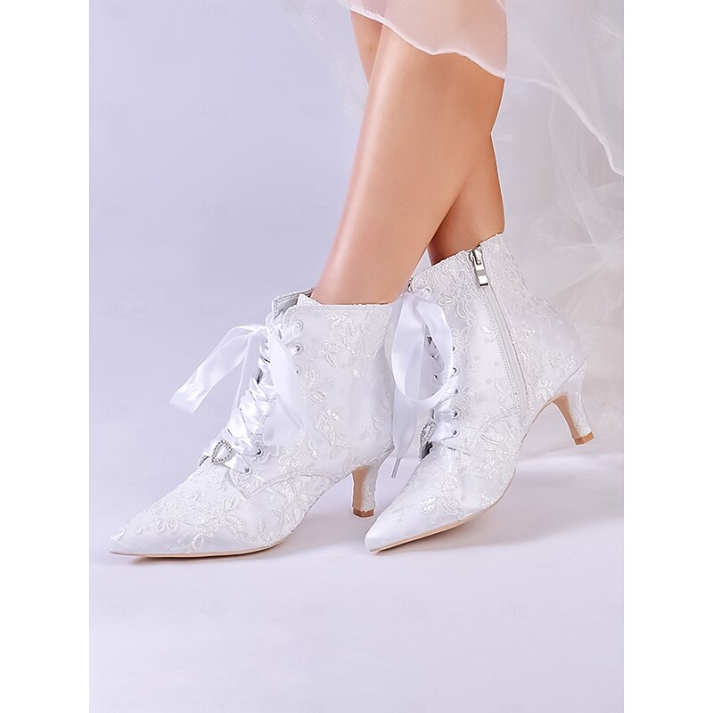 HOT ! Women's Vintage Lace Ankle Boots with Satin Ribbon Laces and Kitten Heels – Elegant Bridal Shoes for Weddings and Victorian-Inspired Events