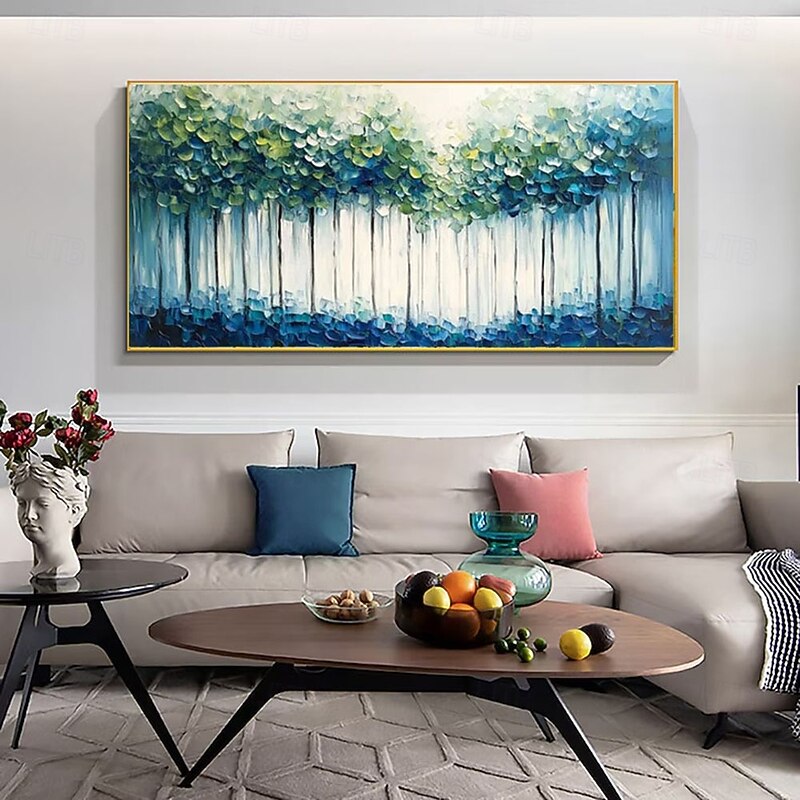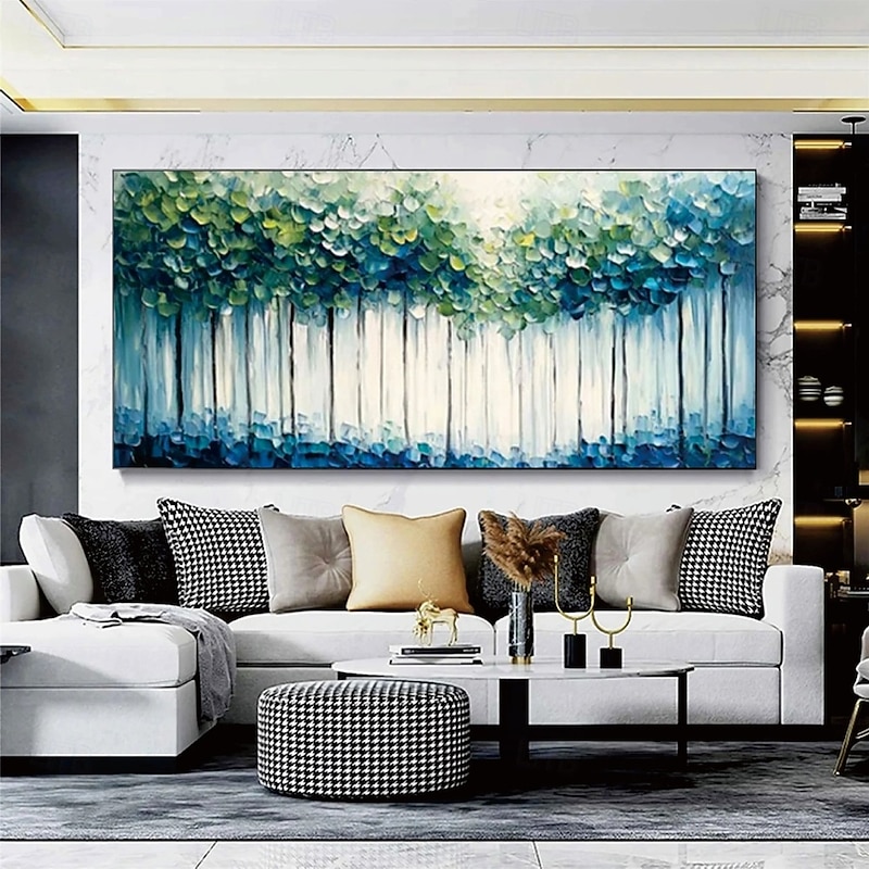 $108.99 - Handmade Oil Painting Modern Abstract Forest Bold Textured Brushstrokes Emerald Green Canopy Teal Hues Minimalist Trunks Sapphire Depths Contemporary Wall Art Gallery Wrapped Canvas Impasto Technique 2025. Shop for cheap Tree Oil Paintings online? Buy at lightinthebox.com on sale today!