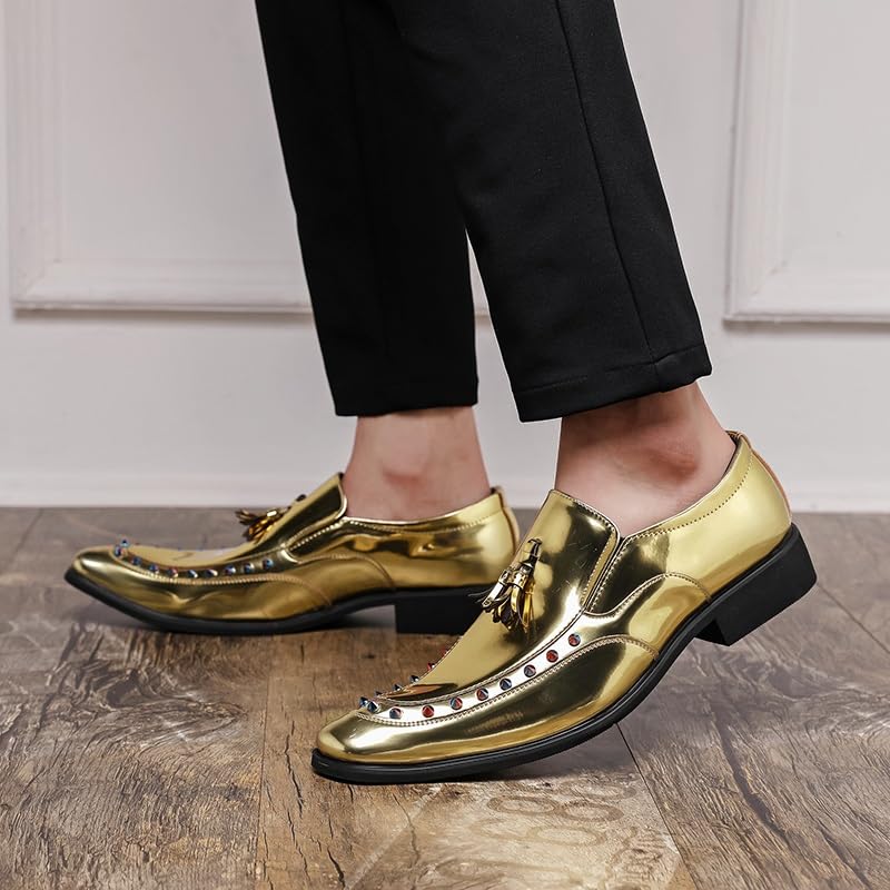 Formal Oxford Shoes for Men Slip On Square Toe PU Leather Tassel Slip Resistant Low Top Anti-Slip Block Heel Casual 6