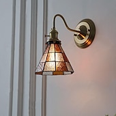 Wall Light Beautiful Retro Lighting 1 Light Glass Wall Light Stained Glass Lampshade Bronze Wall Light Arm Lamp for Indoor Living Room Bedroom 85-265V 6