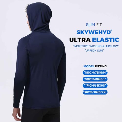 HOT ! Men's Athletic Hoodie Long Sleeve Fishing Shirts, UPF 50+ UV Sun Protection, Fitted High Stretch, Built-in Face Mask