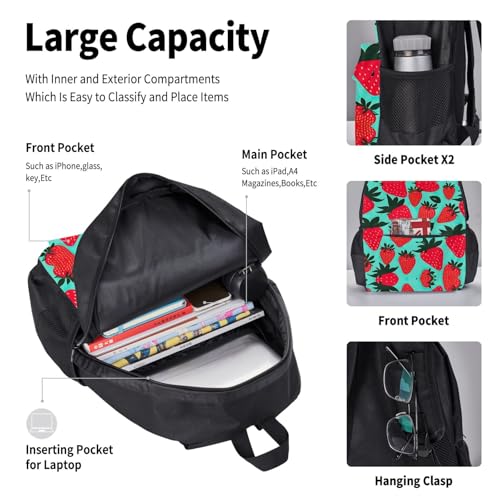 • Complete 3-Piece Set: This Cute Strawberry Set Includes A Spacious Backpack, A Practical Lunch Bag, And A Handy Pencil Case, Providing All The Essentials For Work Or Travel.