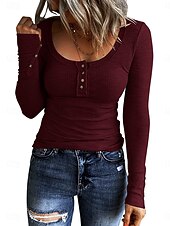 More information about Women's Blouse Solid Color Stylish Casual Long Sleeve Scoop Neck Regular Tops Daily Buttons Black White Pink Wine Blue Summer Spring Fall