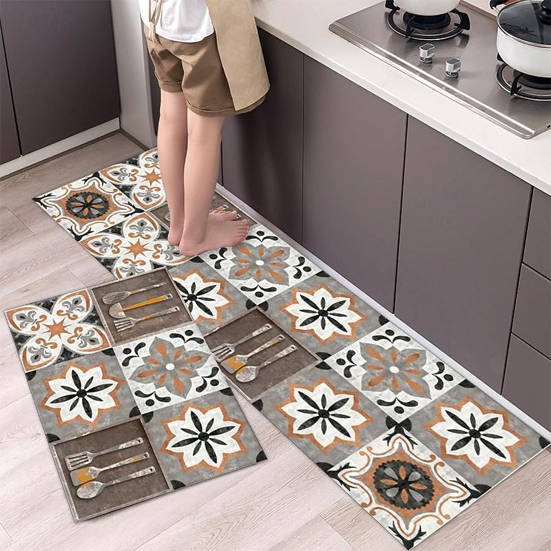 2 Piece Waterproof and Oil-Proof Kitchen Anti-Slip Mat, Bathroom Anti-Slip Mat, Bedroom Cushion, Living Room Carpet, Door Mat, Kitchen Carpet- 40 * 60cm + 40 * 120cm 23