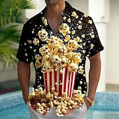 Men's Food Popcorn Shirt Summer Hawaiian Shirt Button Up Shirt Short Sleeve Hawaiian Holiday Beach Wear Summer Spring Turndown 3D Print Collared Shirts Front One Pocket Black 7