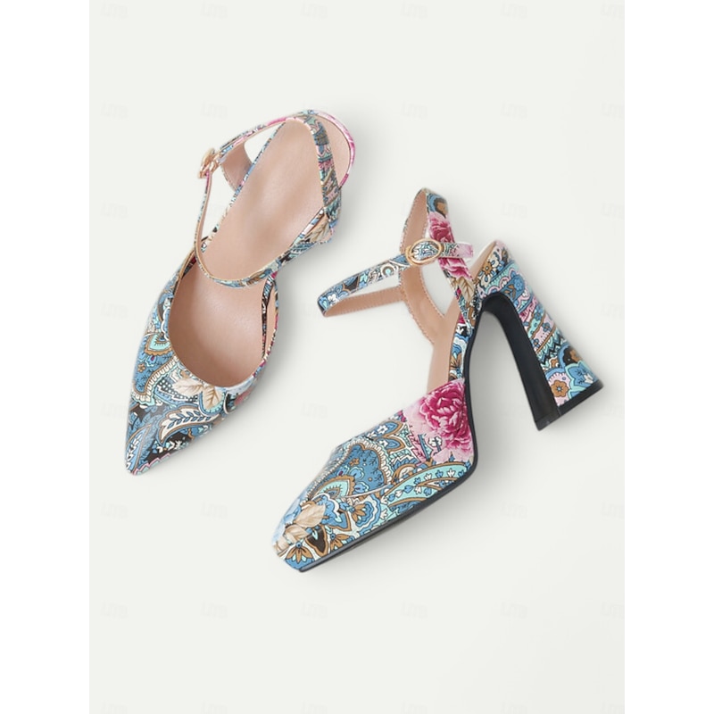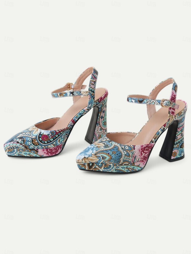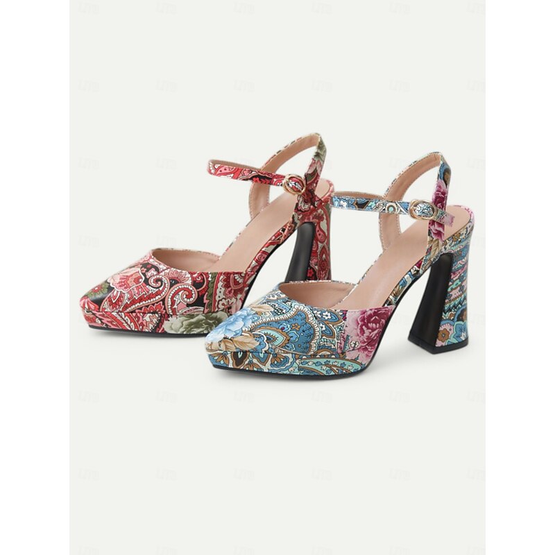 More information about Red Paisley Patterned High Heel Sandals for Women – Vintage Chic Open Toe with Block Heels – Perfect for Parties and Special Occasions