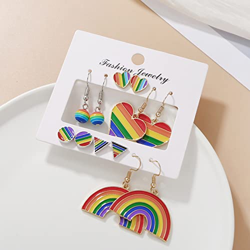SuoFrun 6 pairs LGBT Rainbow Flag Earring Lesbian Gay Pride Charm Alloy Enamel Dangle Earrings for Women Geometric Shape Dangle Earrings Jewelry 5