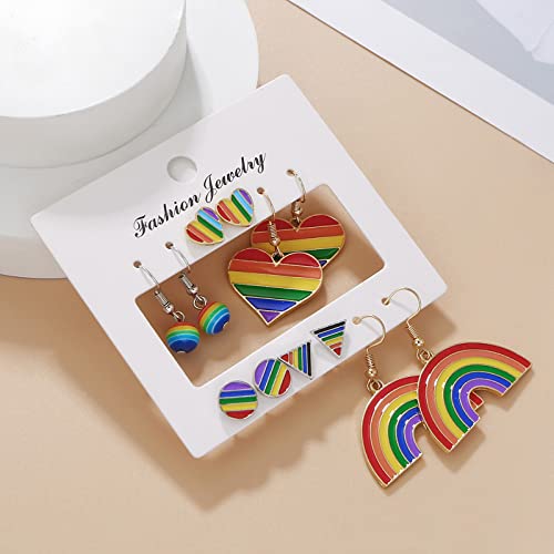 SuoFrun 6 pairs LGBT Rainbow Flag Earring Lesbian Gay Pride Charm Alloy Enamel Dangle Earrings for Women Geometric Shape Dangle Earrings Jewelry 4
