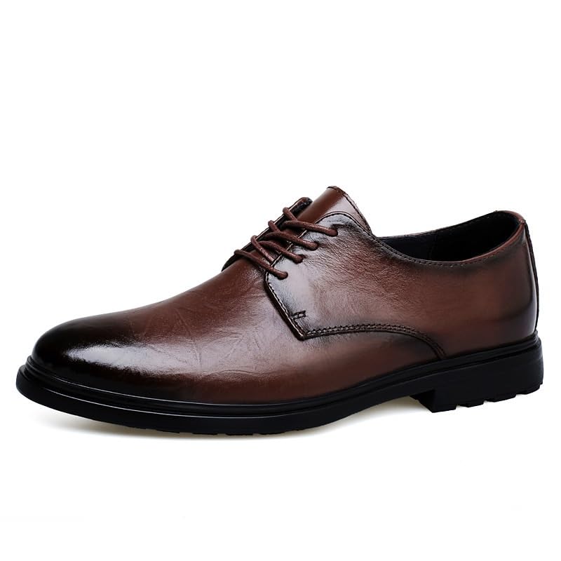 Men's Genuine Leather Platform Oxfords Pointed Toe Lace up Comfort Breathable Chunky Heels Dress Shoes for Business Work Dating 6